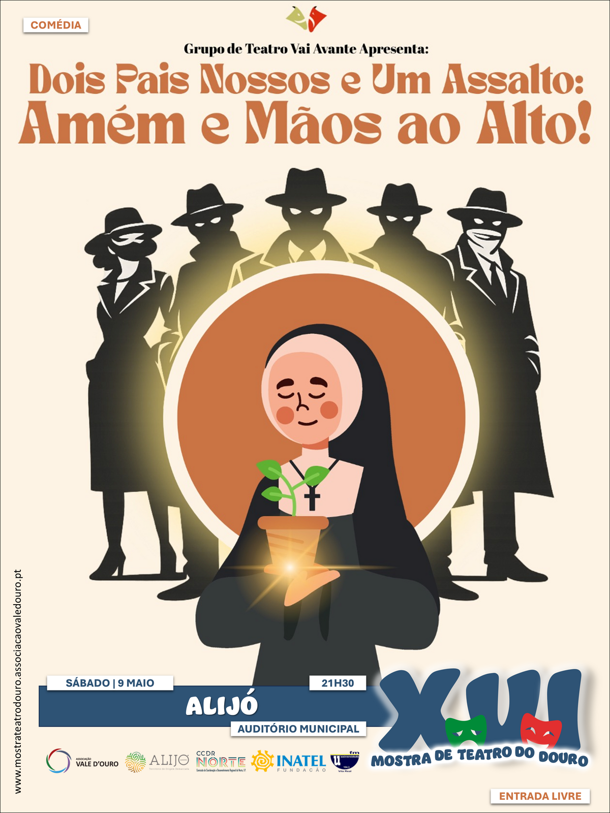 ALIJÓ - 09 maio | 21h30 | Teatro Auditório Municipal - Dois Pais Nossos e um Assalto: Amén e Mãos ao Alto! - GT Vai Avante (Auditório Municipal)